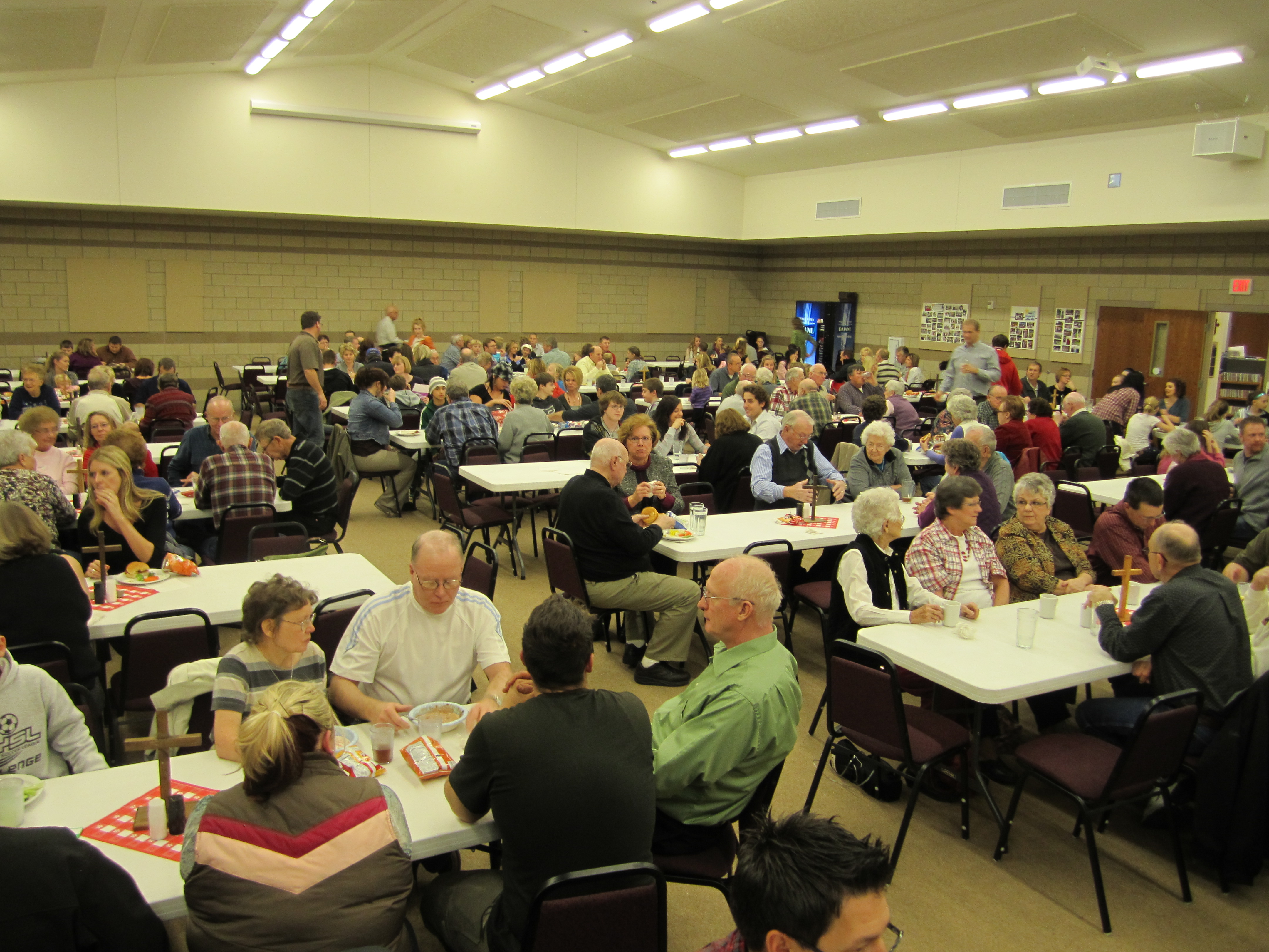 At 5:30 the room is filling up, plus there are 6 full tables out in the narthex