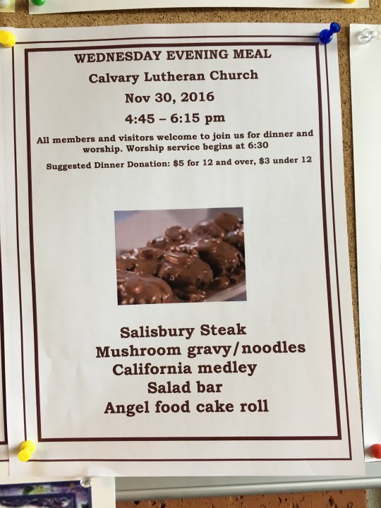 Every week our menus are created to appeal to a wide variety of needs and tastes. For the last few years we have offered a salad bar with every meal and last year we added gluten-free main dish and dessert options. Karla made this week’s menu with the kids in mind, and for the kid hiding inside every grown-up who secretly yearns for mac and cheese and jello every once in awhile.