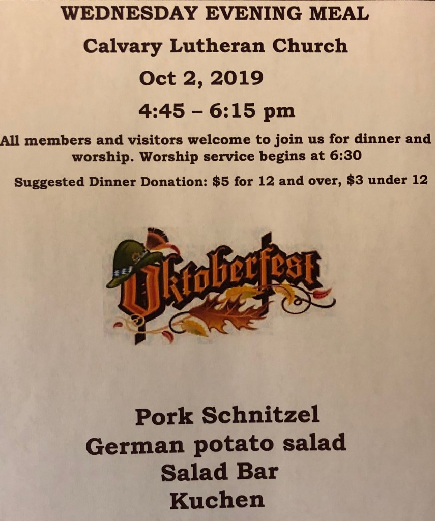It’s October already, can you believe it! The forecast for tomorrow is cold and rainy with a chance of snow in the morning, a perfect day for some German comfort food. Did you know that kuchen is the official state dessert of South Dakota? We order our kuchen from Pietz’s Kuchen Kitchen in Scotland, SD. http://www.kuchenkitchen.com/ Tomorrow we’ll be serving their blueberry, strawberry rhubarb, cherry, peach and cottage cheese flavors.