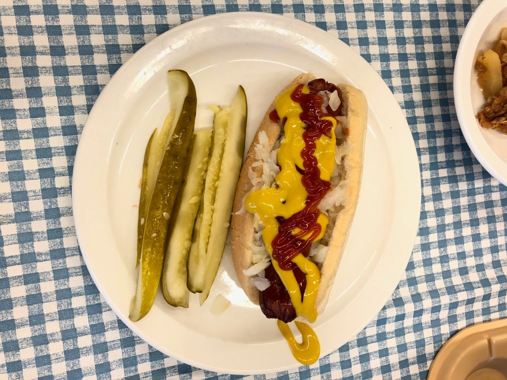 Our Gourmet Hot Dog Bar was a big hit last week. We served lots of fixin’s to go with our 3 different kinds of hot dogs.