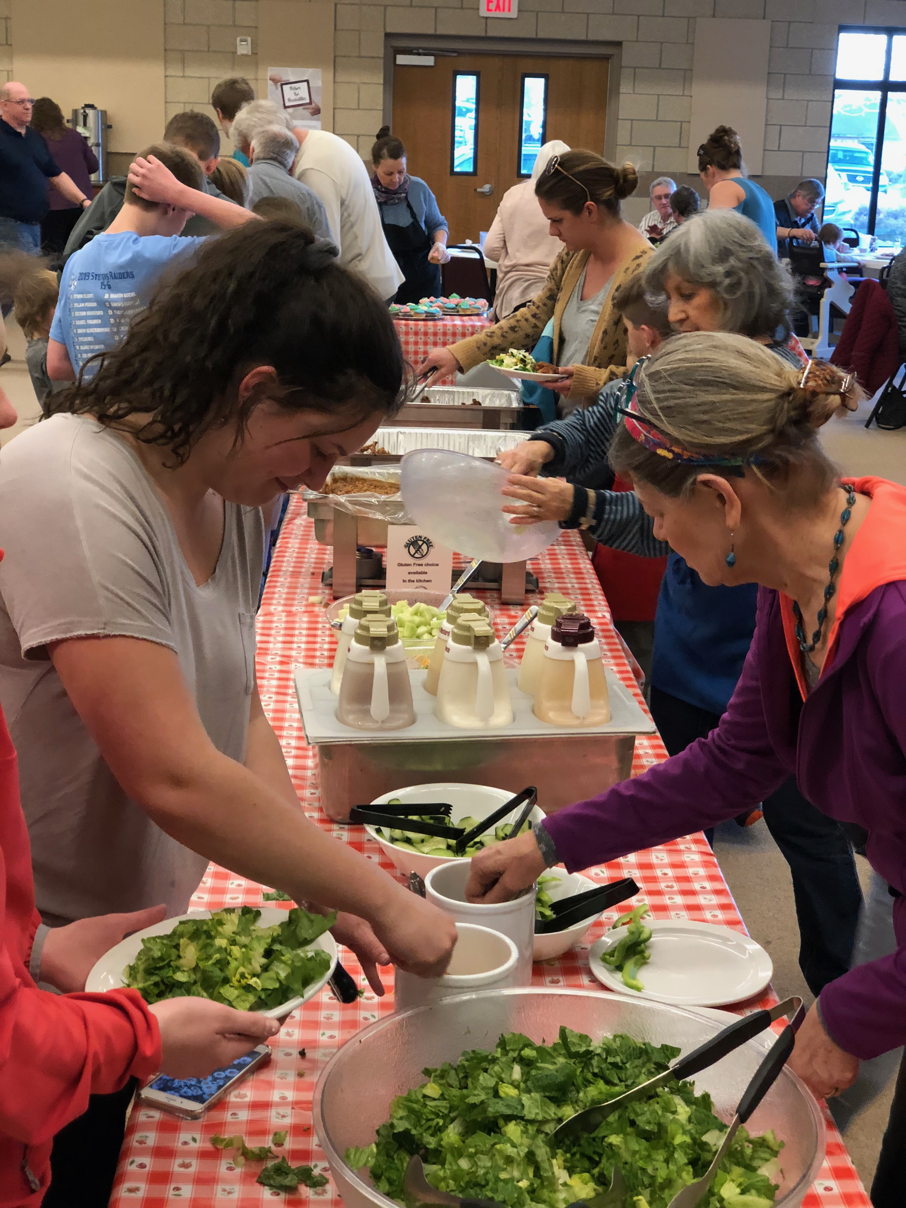 Dinner service is from 4:45 to 6:15 pm, followed by a contemporary worship service lead by the praise band in the sanctuary. All members and visitors are welcome to join us for dinner. Please donate what you can to help cover the cost of the meal. We suggest $5 for adults and $3 for children.