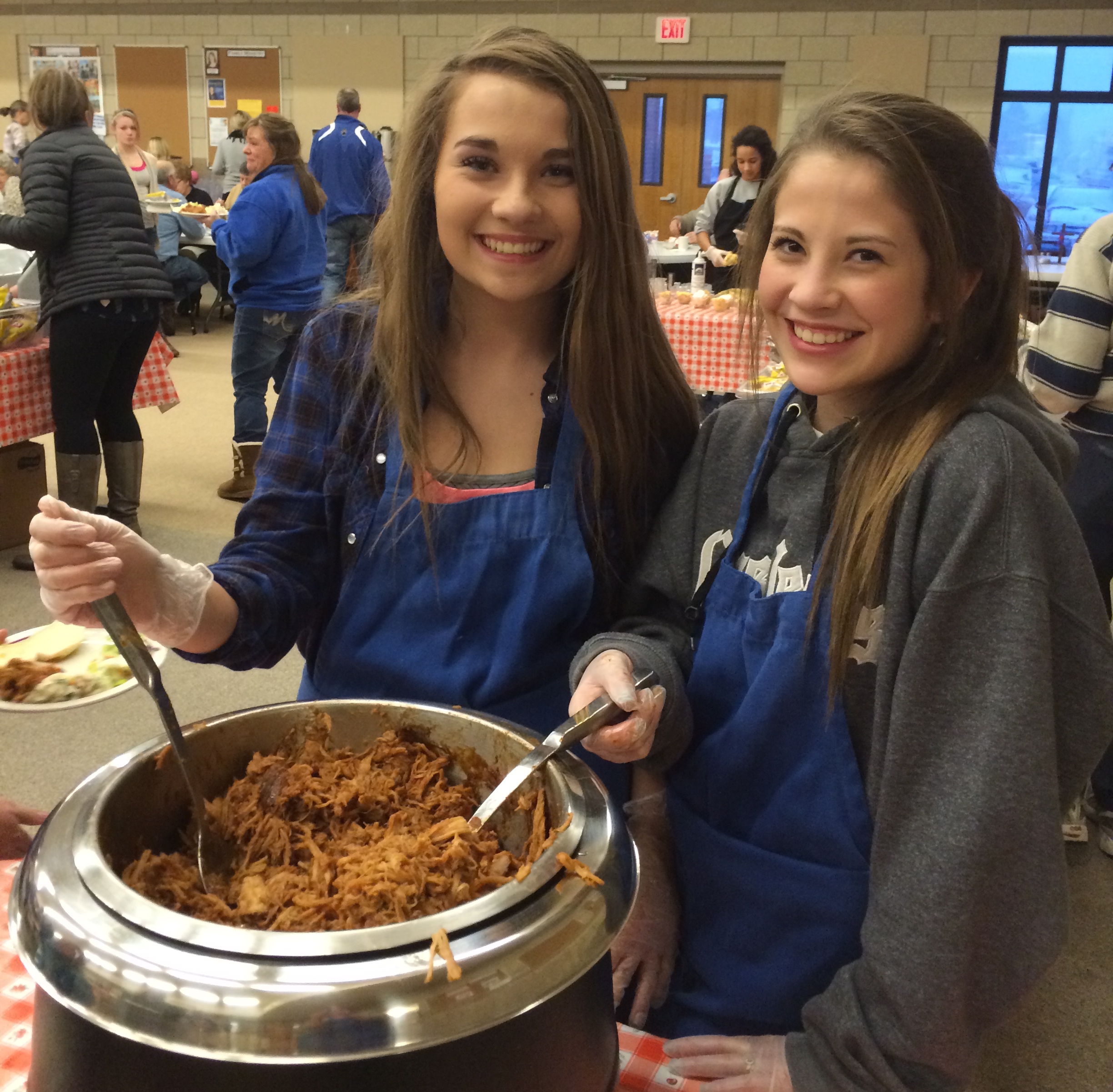The Calvary kitchen will make Cheesy Church Potatoes, Broccoli Salad, Salad Bar, and Banana Cake to accompany the chicken.